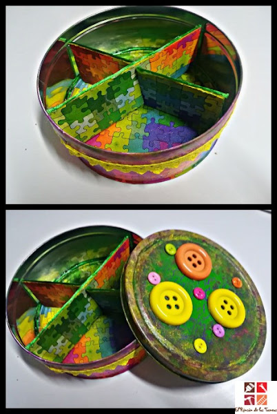 Mi madre quería algo para guardar sus botones y eso que ella es muy ordenada y los tiene todos metidos en bolsitas de tela que ella hace con su pasamanería y todo y la quedan preciosas, pero me dijo que cuando tuviese tiempo reciclase alguna caja para tener ordenados todos los botones.