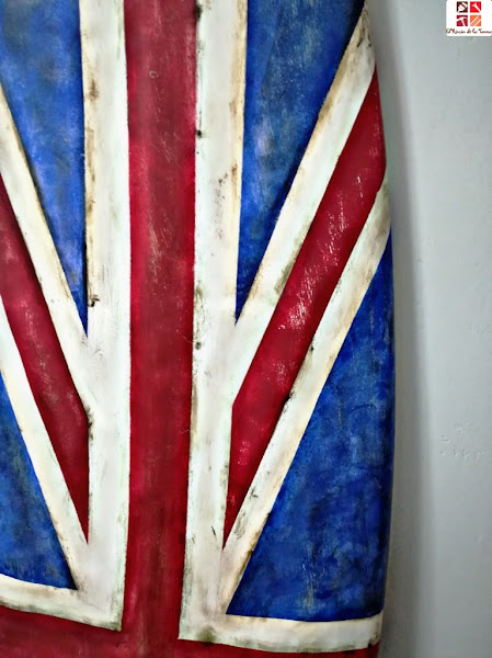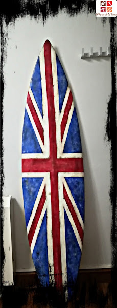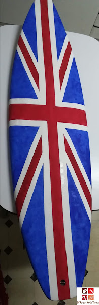 Así es que y a falta de un color , el verde , participo con el blanco, rojo y el azul y con este encargo de una tabla de surf tan inglesa.