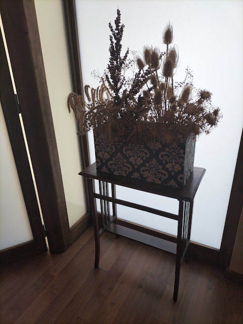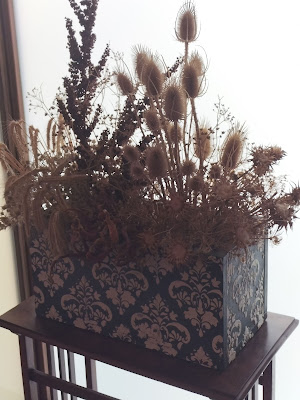 Lo que la decora flores secas viene siendo hierbas secas de las cunetas del camino. (Cardos, espigas, guindillas y demás hierbas de la cuneta) jajaja esto está al alcance de todo el mundo.
