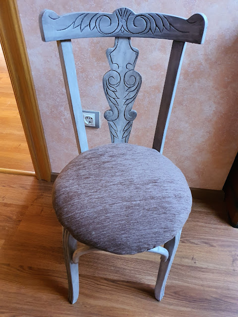 El asiento de la silla también lo desmosto, para quitar el viejo tapizado de escay.