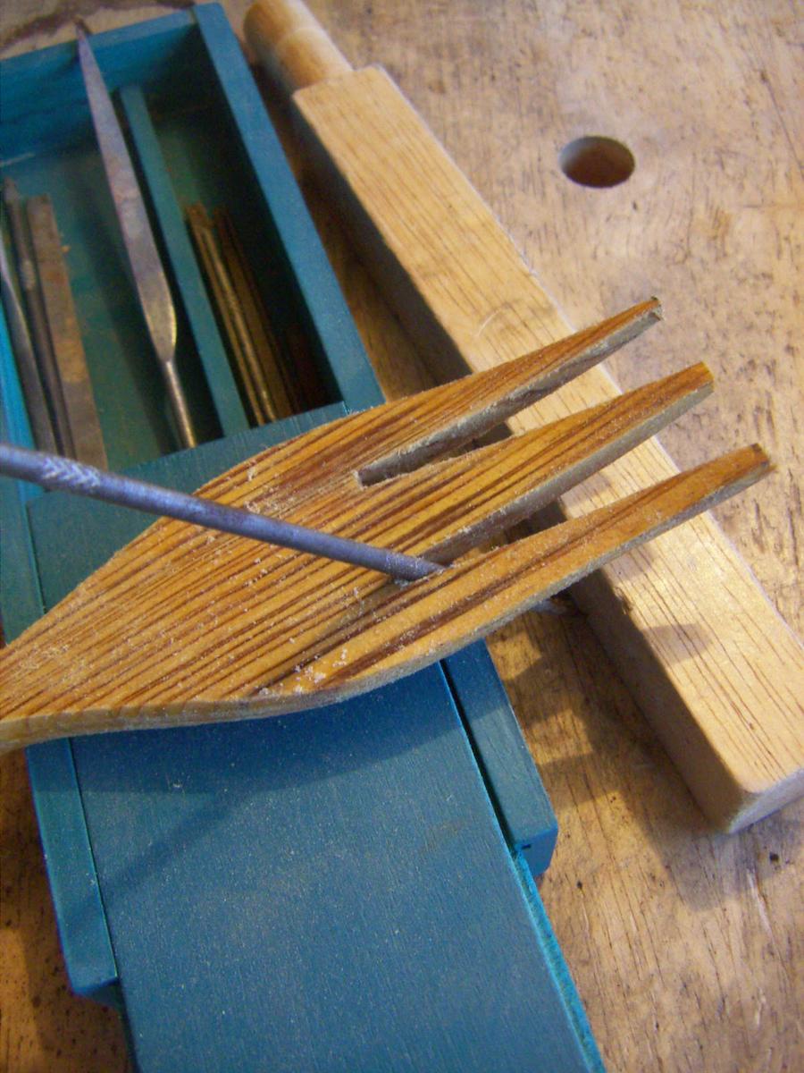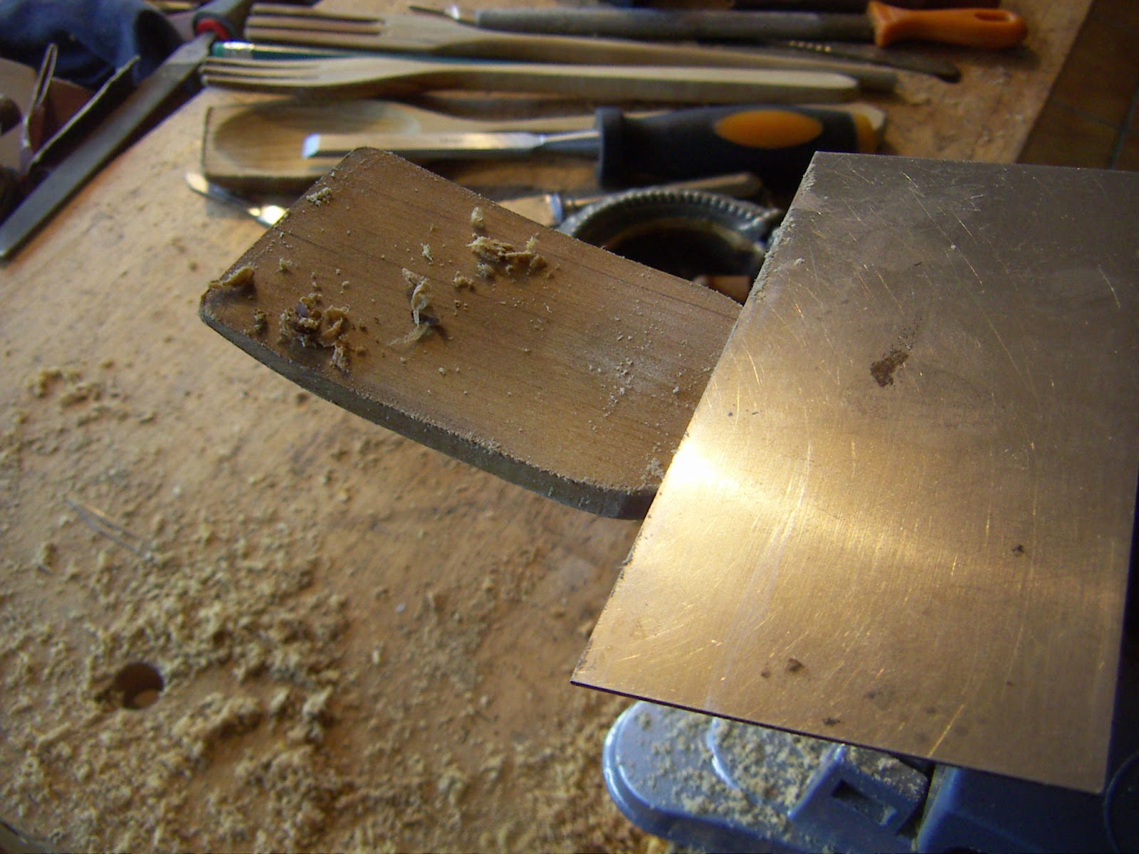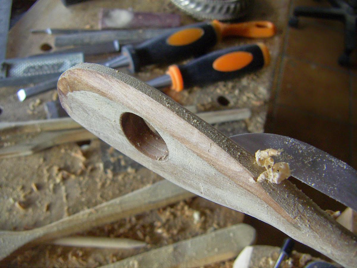 ...una gubia..una navaja o, también podría hacerse utilizando una escofina (lima de hierro para madera)
