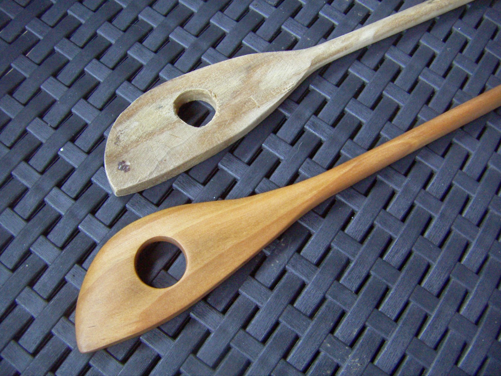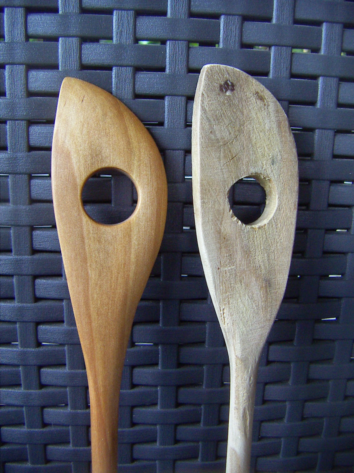 Seguro que todos tenemos en la cocina alguna cuchara o espátula de madera de esas más bien baratas, con un acabado bastante mediocre y que con el uso...en fin..terminan casi deshaciéndose ...