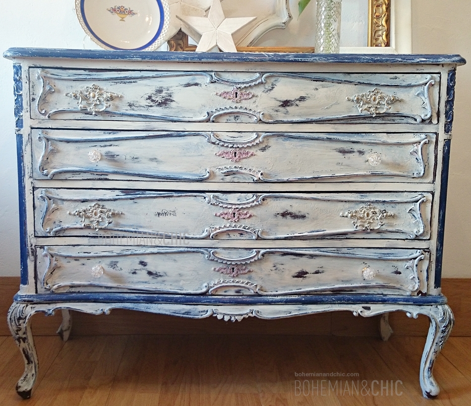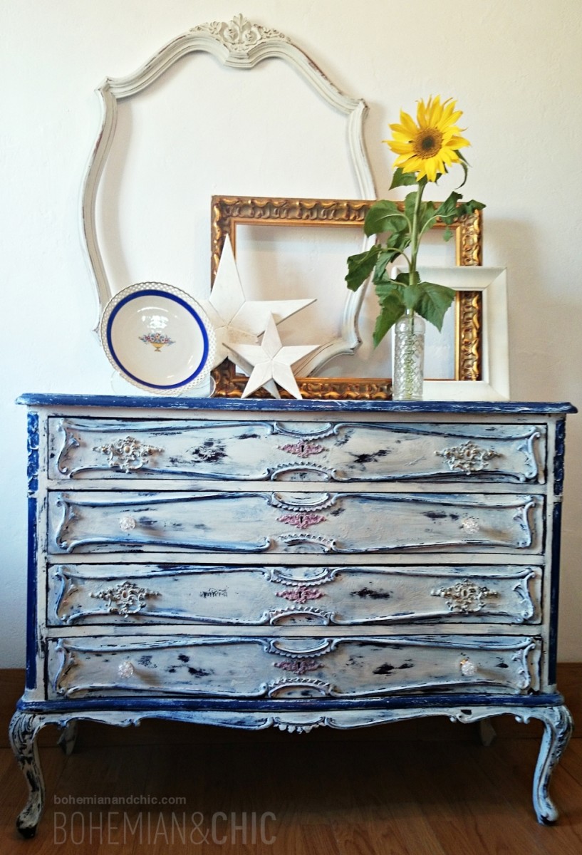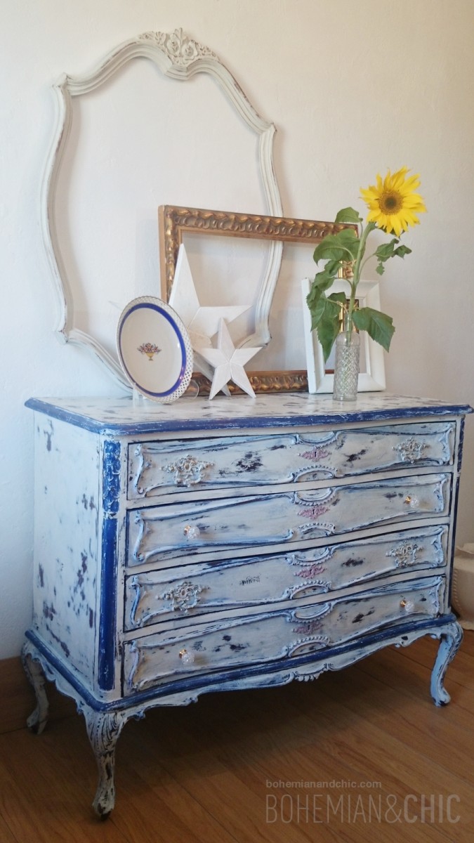5ºVolví a pintar de azul sobre el blanco la moldura de la tapa y la de los laterales. Para que tubiera la sensación de muchas capas de pintura como un mueble antiguo.
