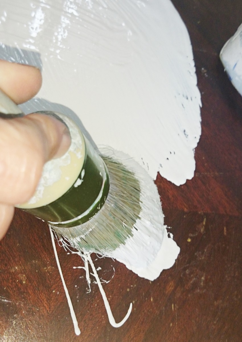 3ºAplique después el tono blanco en toda la superficie también donde había dado el tono azul. Los brochazo cortos y en todas direcciones.