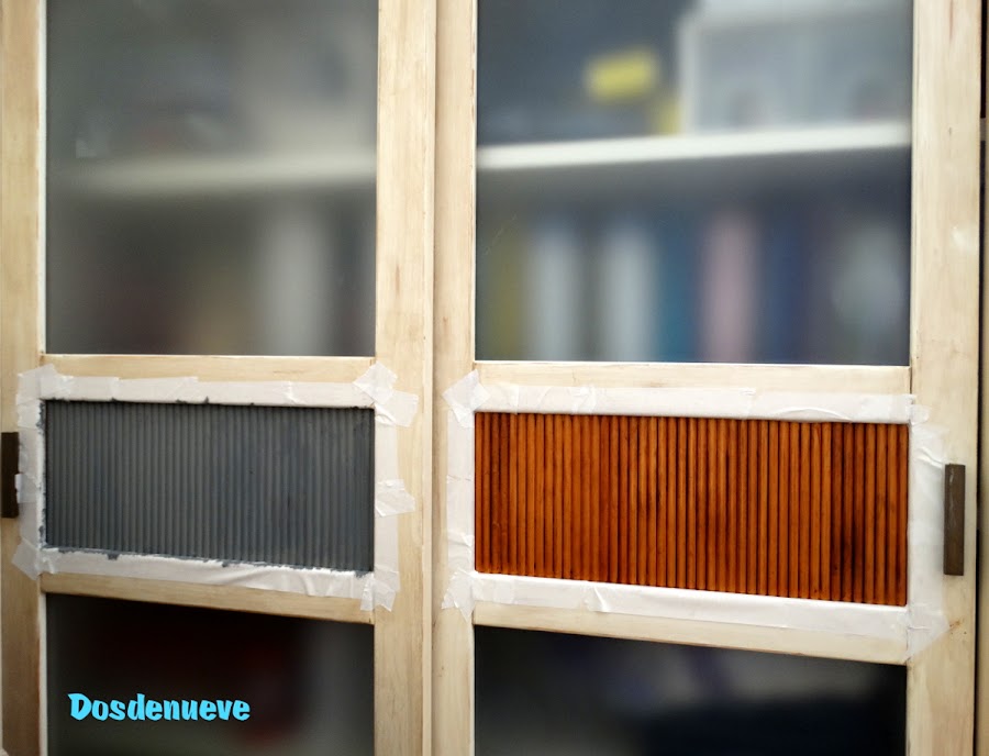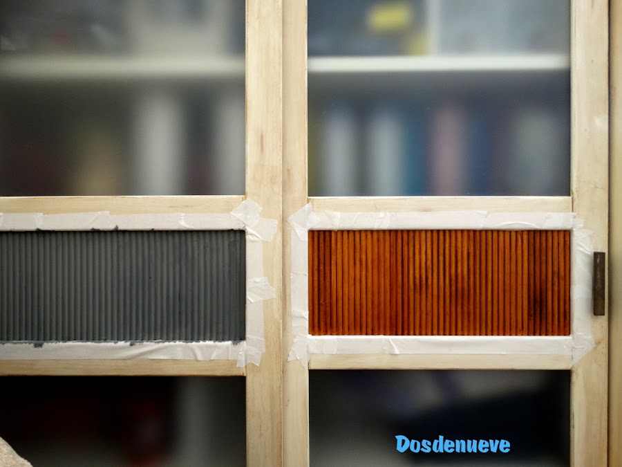 PASO 9: Actualizamos la decoración de la vitrina pintado con la pintura a la tiza de color gris los paneles centrales.