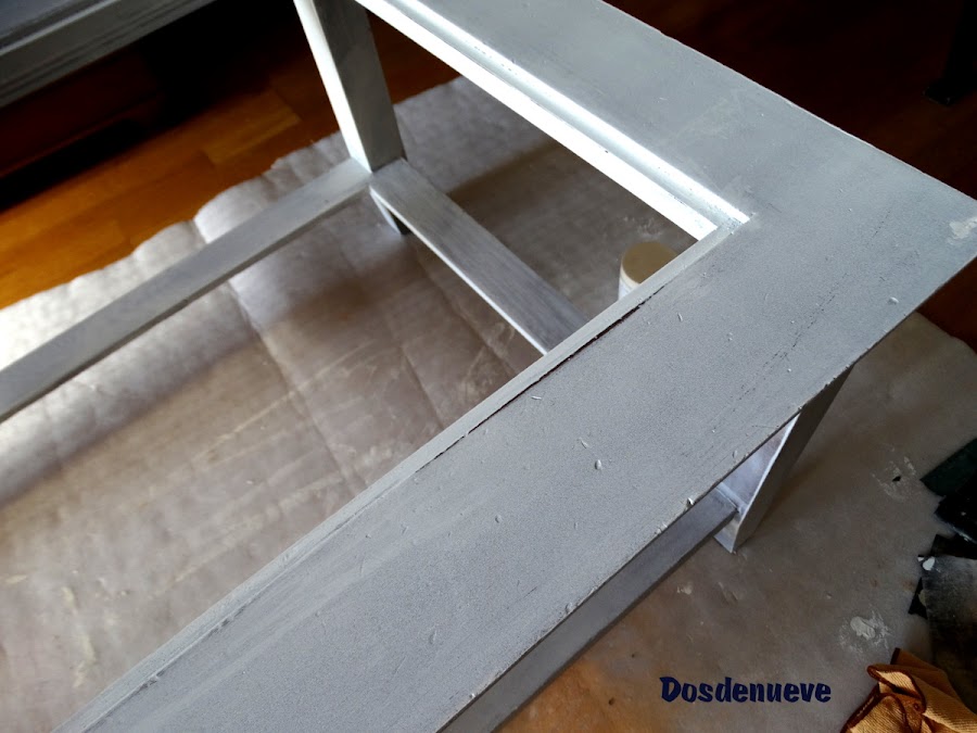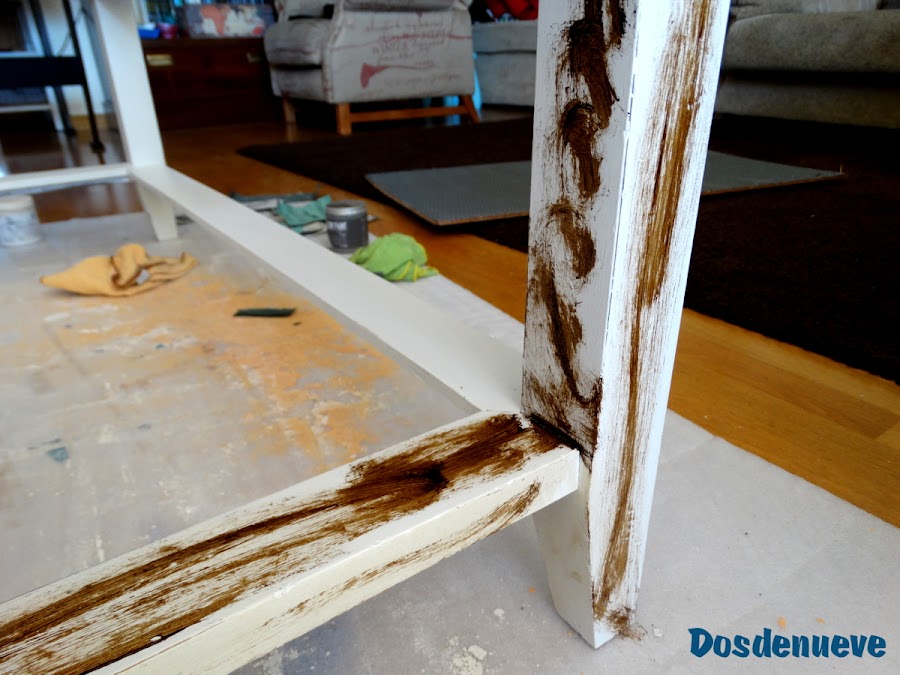 PASO 7: Decoramos el sobre de nuestra mesa de centro. Aquí hemos modificado un poco el acabado del mueble. Como se trata de la zona que más va a "sufrir" por el uso diario hemos aplicado 2 manos de barniz mate para proteger la madera.