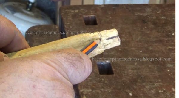 Luego, por el mismo sitio donde se encuentra la vieja cuña, cortamos para que ingrese la nueva, que será mas gruesa, hecha de cualquier tipo de madera dura.