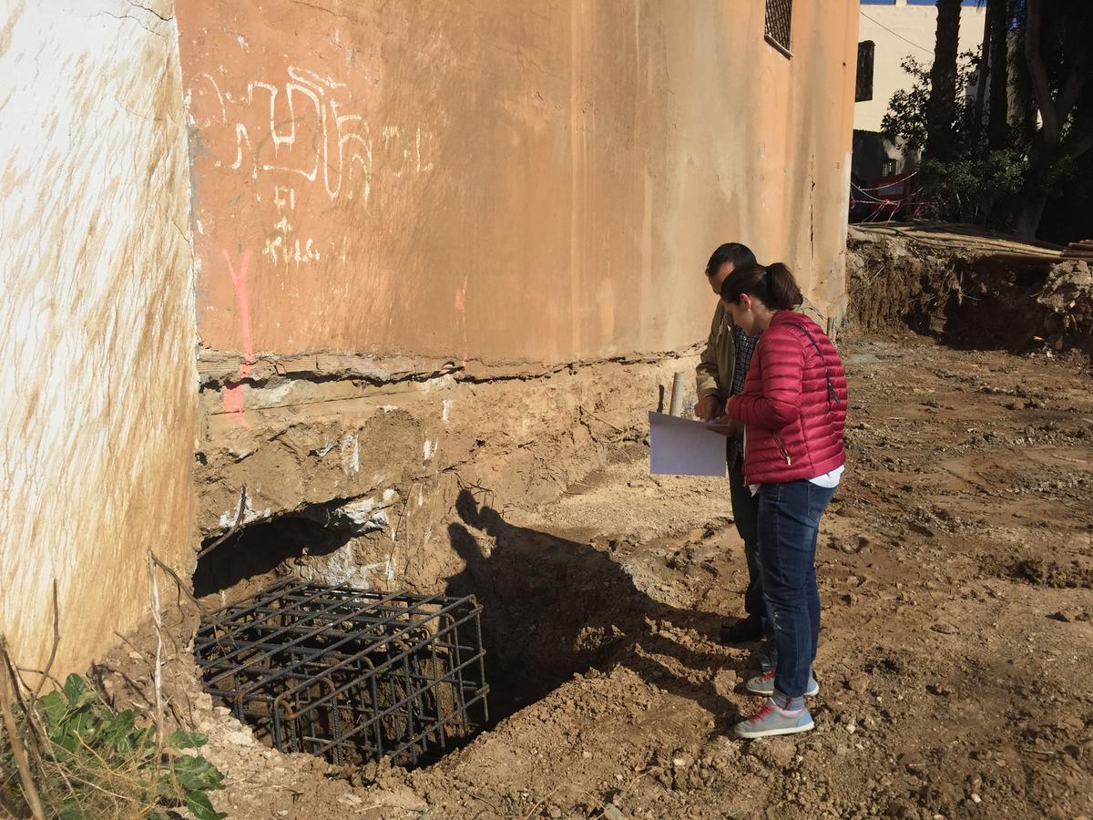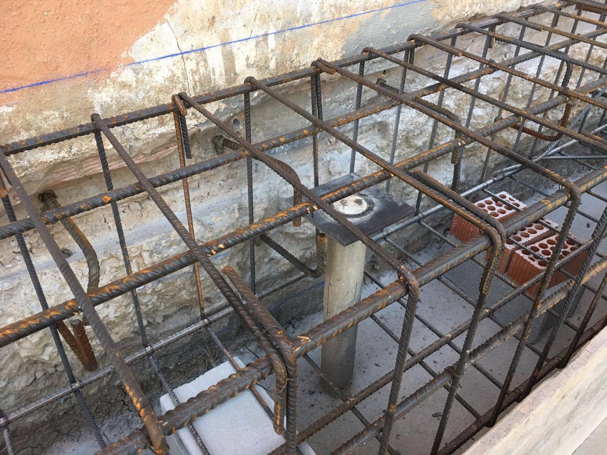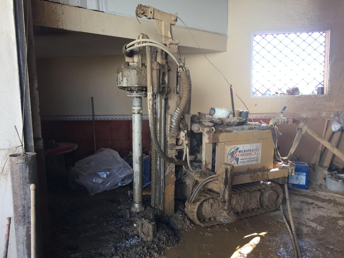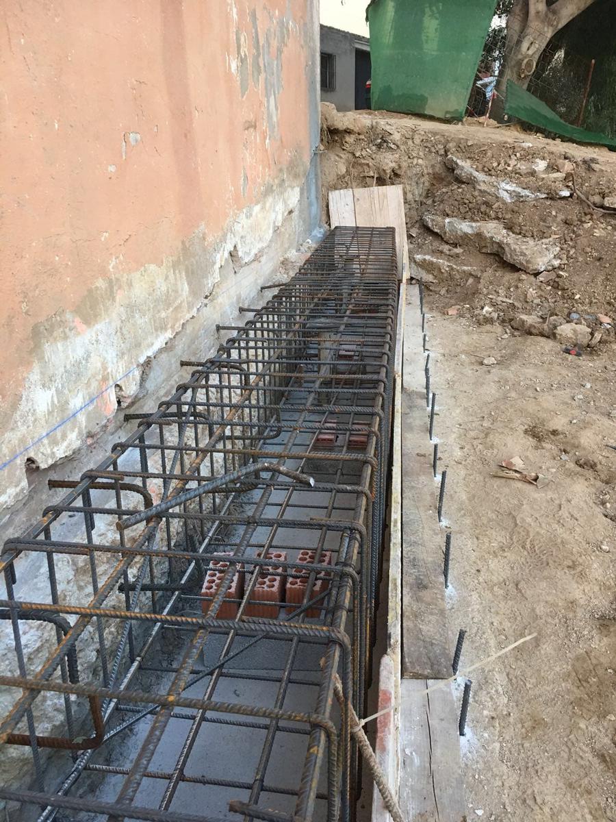 Tras realizar el estudio geotécnico y comprobar que el terreno firme se encontraba más profundo en un sector de la parcela (había sido rellenada para ponerla al mismo nivel), la solución que reparación fue la de micropilotaje. Para ello se “pinchó” el terreno en los puntos donde se encontraban las zapatas superficiales que no se situaban en el verdadero terreno firme, creando estos tubos de hormigón de unos 15 metros de profundidad para anclarse al terreno resistente.