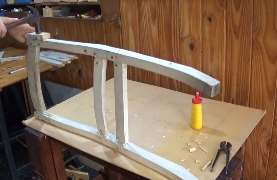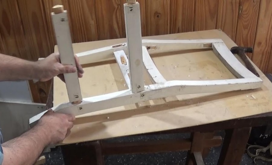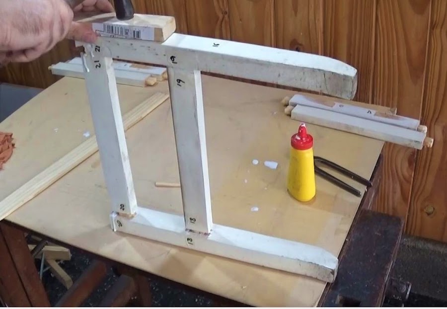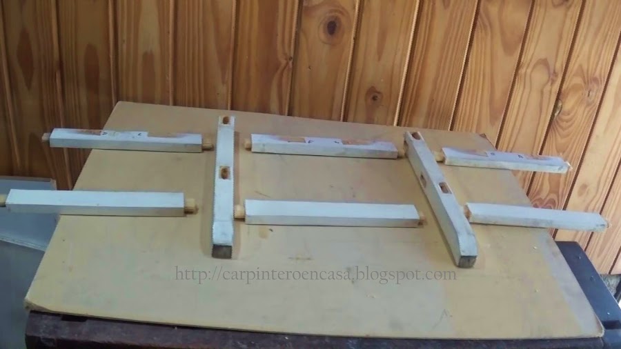 Para el armado, haremos el proceso inverso. Golpearemos sobre cada unión espiga caja. Por fuera, en cada sector, y con un taco de madera en medio, golpeamos con firmeza con un martillo pesado, hasta que ingrese a tope toda la espiga.