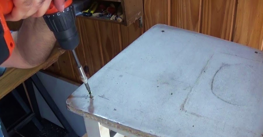 Aprovechamos sus agujeros en el asiento para colocar nuevamente tornillos nuevos, y cola en todo el perímetro de la base, esto hará que sea más fuerte la unión de la parte trasera con la delantera.