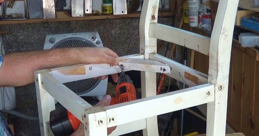 Una vez enumerado todo, comenzamos a desarmar, comenzando por el asiento, retirando tornillos o clavos que estén sujetándola al resto del esqueleto de la silla.