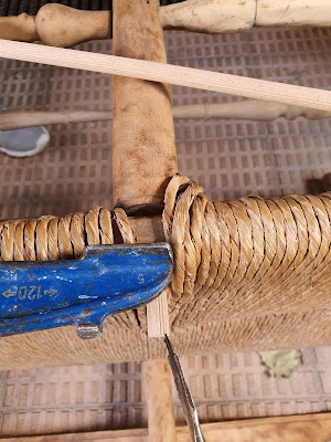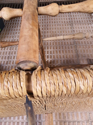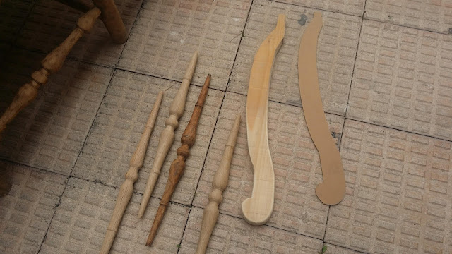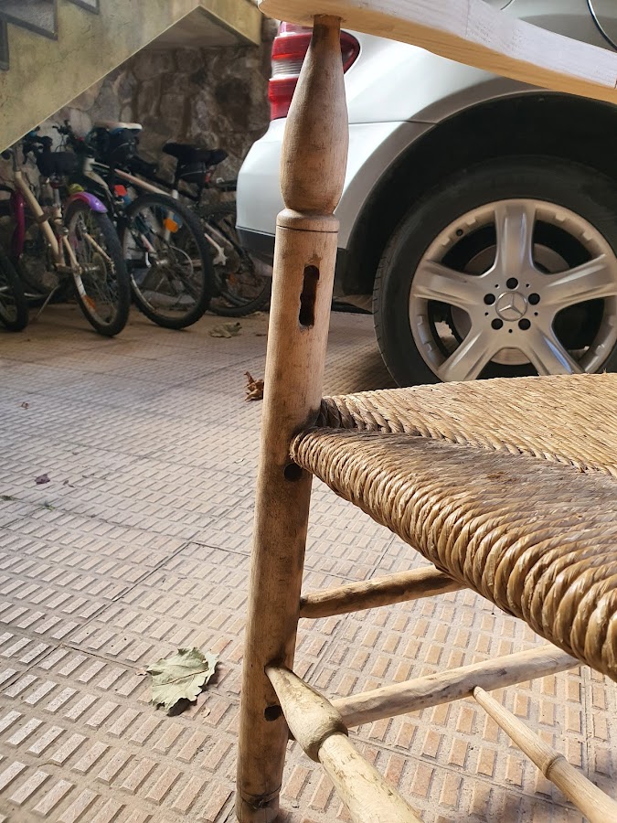 Los otros palos torneados los hizo un carpintero local guiándose por el original que había, se puede apreciar cual es el antiguo y cuales son los nuevos. (Lógicamente yo no tengo un torno donde poder replicar las piezas de madera).