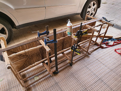 Aquí se ve como una vez fijados todos los palos en su sitio y sujeto con gatos hasta que seca la cola.