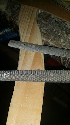Una vez corté la madera de palet, para reproducir el reposabrazos (decir que lógicamente tenía el mismo grosor que el reposabrazos compañero), la fui contorneando su forma usando para ello las escofinas que se ven en la foto...para después lijar intensamente.