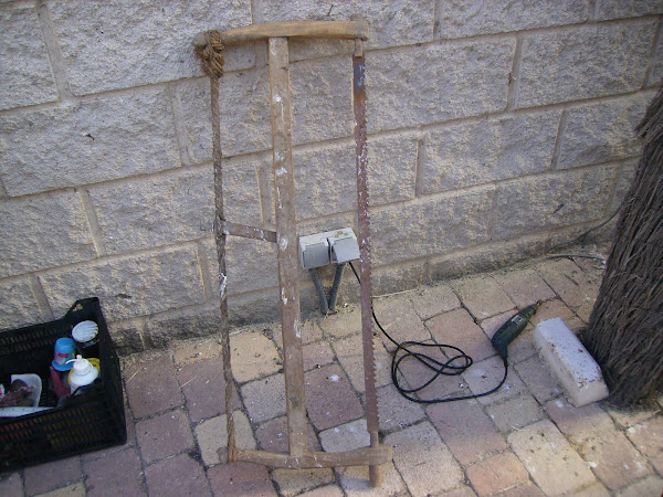 Luego a la parte de arriba, le puse una cuerda y el palo central que a base de darle vueltas tensa la sierra.