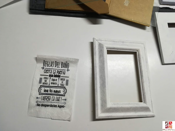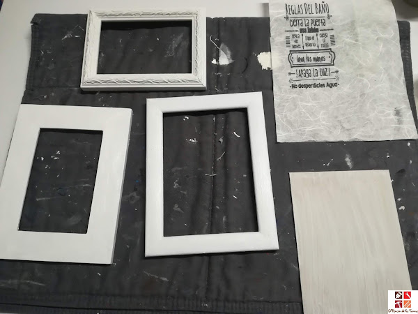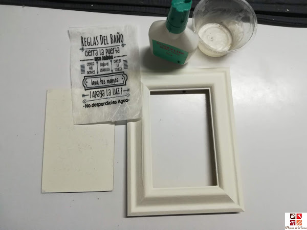 la parte trasera del marco la he pintado de blanco para que al pegar con cola decoupage el motivo tenga más luminosidad.