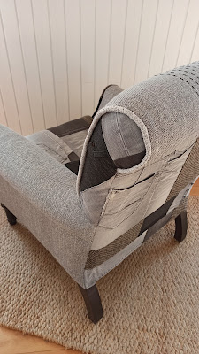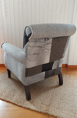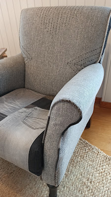 - Cosido de vivos para los reposabrazos: Yo lo hice con retales de tela de distintos vaqueros y tejido de lana. Era ropa que había retirado .