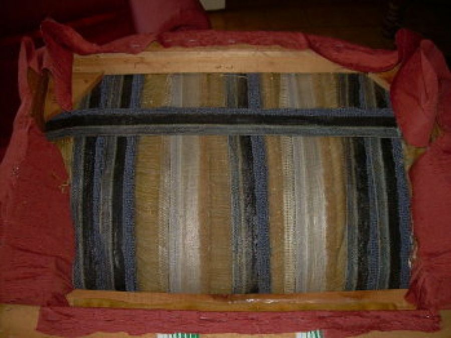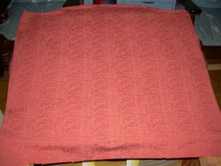 8 Por último, forramos las patas y realizamos el forro de los cojines de la base del asiento con la nueva tela. Como nota, nuestra amiga ha vuelto a emplear el cordón en los laterales, para darle un toque más estético.