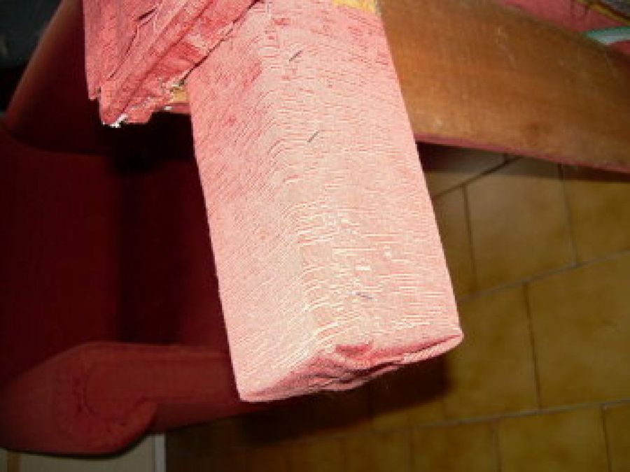 1 El primer paso es eliminar el tapizado anterior, comenzando por el forro, y siguiendo por las esquinas, los laterales y los frontales. Así, Adri2010 nos aconseja ir anotando o fotografiando el orden en el que lo realizamos, pues después deberemos tapizar a la inversa, con el objetivo de que, en el resultado final, queden todas las piezas bien colocadas y las grapas ocultas.