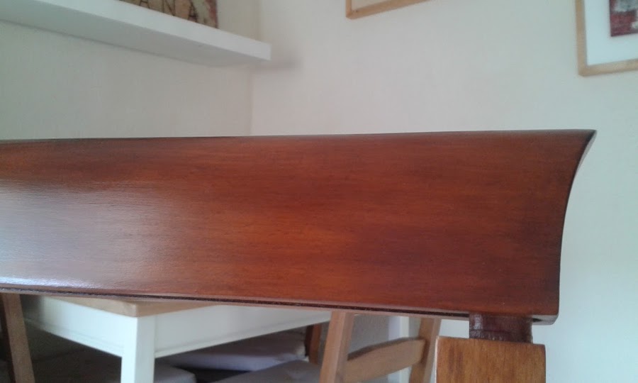 Su estructura estaba bastante arañada y tuve que lijarlas y barnizarlas cuidadosamente consiguiendo el tono de
