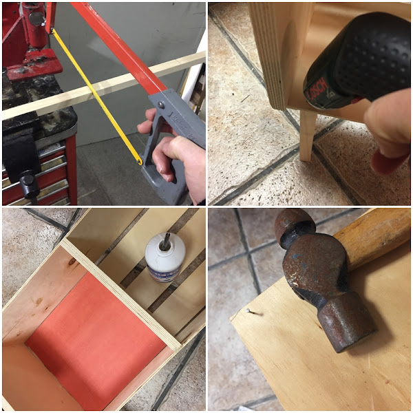 Primero tomé medidas de la altura de las patas, pues quería que el cajón quedara elevado del suelo. Lo siguiente era cortar el listón para convertirlo en patas.