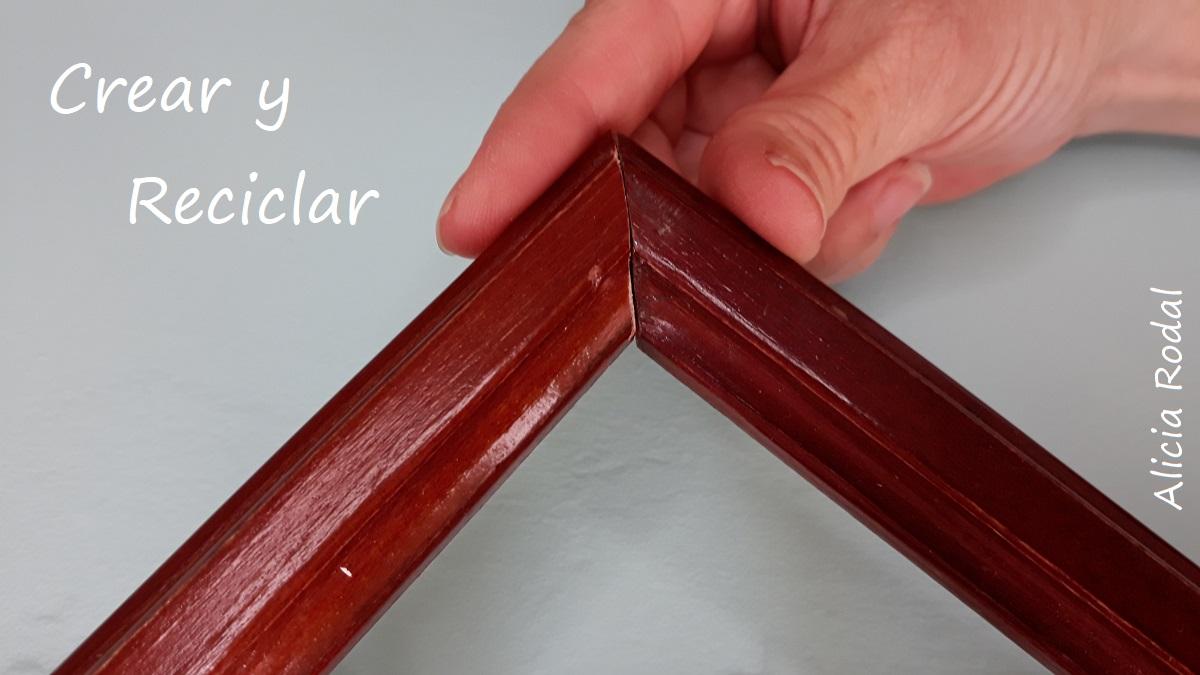 Como te comenté un poco más arriba, además de la madera con el espejo, también voy a reutilizar los embellecedores. Voy a medir y cortar los embellecedores para ponerlos por todo el borde del espejo.Lo más importante a la hora de cortar los embellecedores es tener mucho cuidado en los extremos, deben ser ángulos de 45º para que encajen perfectamente en las esquinas.