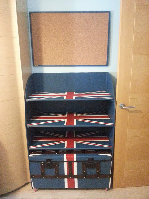 Este es el aspecto de la estantería y el baúl. Logro que el dibujo británico tenga uniformidad con la estantería seguida del baúl.