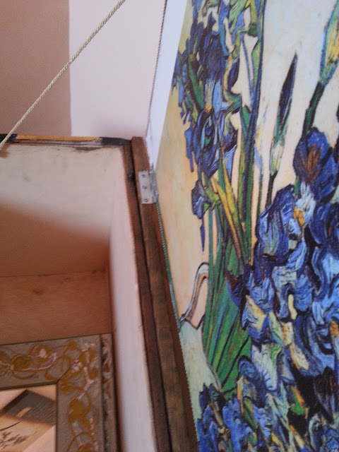 Para la tapa tenía un cuadro, que ya no le gustaba este era de madera dm 10 mm y tenía la lámina pegada de un ramo de flores.