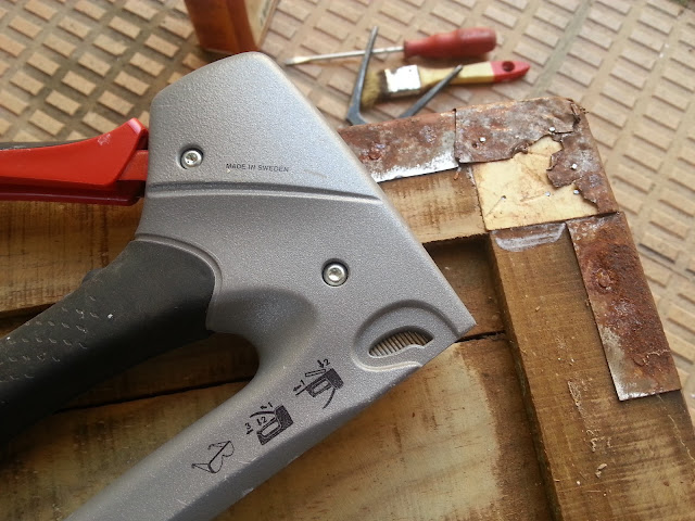Una vez puesto el añadido de madera, remato la chapa contra este usando los clavos de la grapadora.