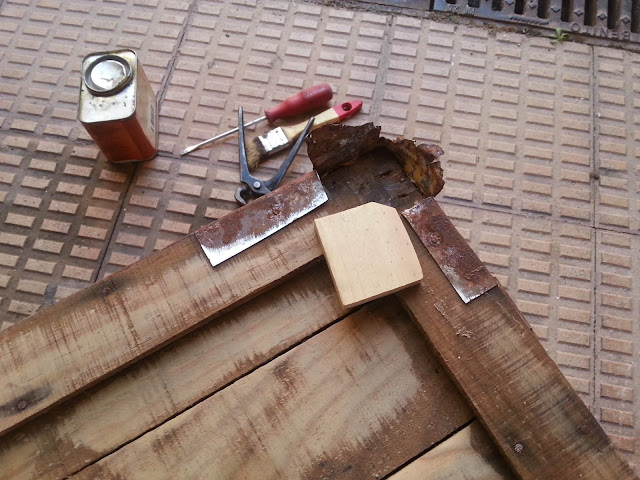 Vamos con el interior, como ya dije la madera es de pésima calidad, pero aun así la lijo bien y remacho los clavos que se encuentran a la vista.