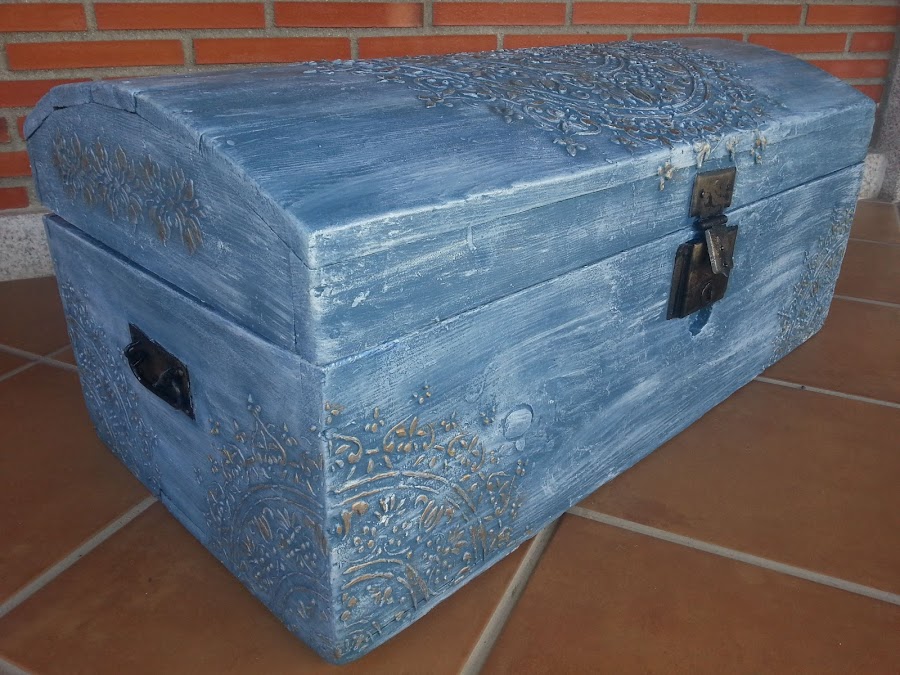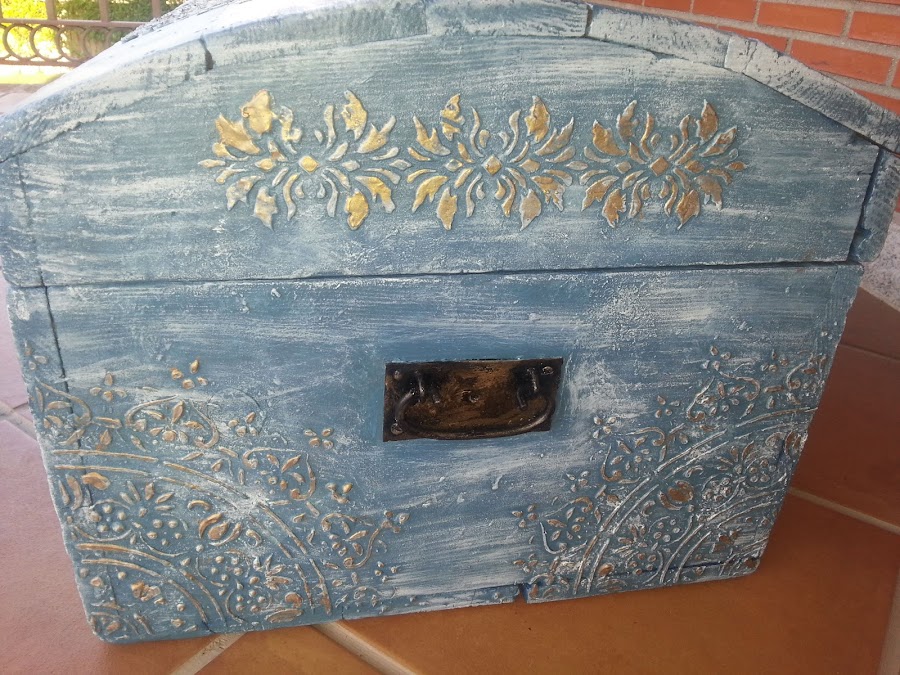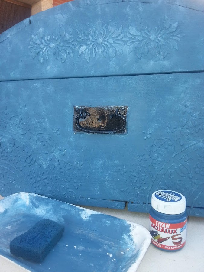 Bueno así queda el baúl ya con su imprimación de base y su pintura acrílica.