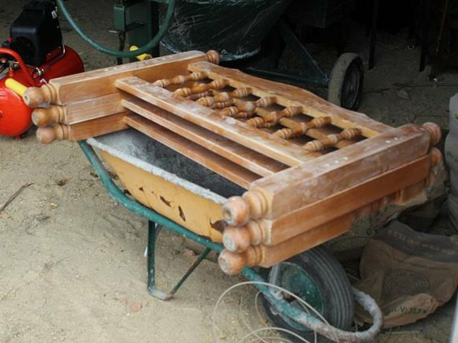 Aquí vemos la vieja litera desmontada. Su aspecto es bastante sólido, sin duda podrá seguir en activo mucho tiempo. Sin embargo, a nuestra amiga Darea no le gustaba la terminación en el color madera original, bastante impersonal y severo, y se aprestó a rejuvenecerla.