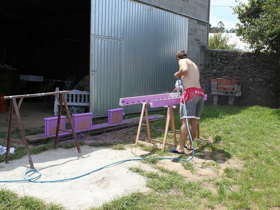 "Después le dimos una imprimación y un segundo lijado antes de darle la pintura violeta", explica nuestra amiga.