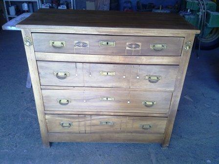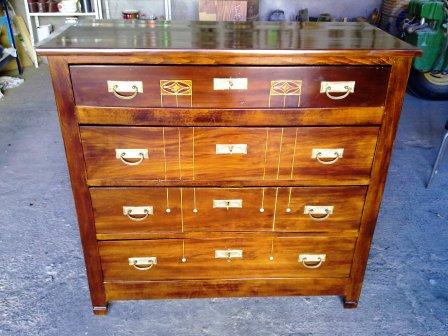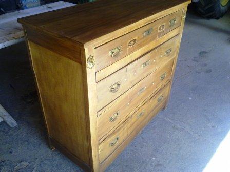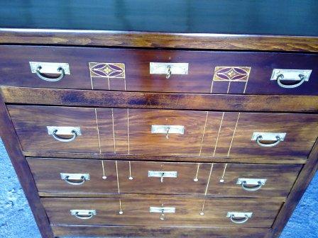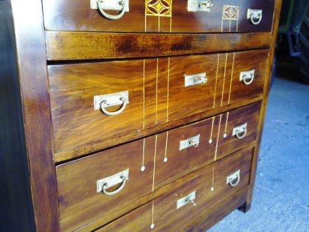 Se trata de la restauración de esta cómoda antigua del s.XIX con una preciosa marquetería artesanal. Con diferentes trabajos de reparación: chapeado de la madera,tratamiento anticarcoma,eliminación del acabado original,encolado de piezas. La conservación de su estado original se encuentra perfecto, además de que la marquetería está prácticamente intacta. Los cajones antes de empezar a trabajar:de ...