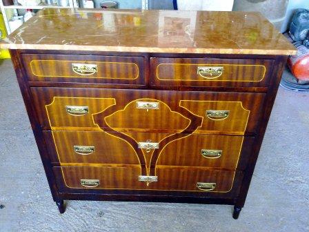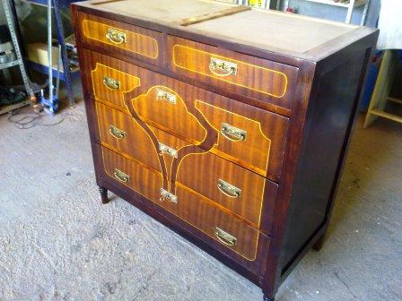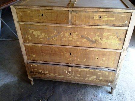 Se trata de la restauración de esta cómoda antigua del s.XIX con una preciosa marquetería artesanal. Con diferentes trabajos de reparación: chapeado de la madera,tratamiento anticarcoma,eliminación del acabado original,encolado de piezas. La conservación de su estado original se encuentra perfecto, además de que la marquetería está prácticamente intacta. Los cajones antes de empezar a trabajar:de ...