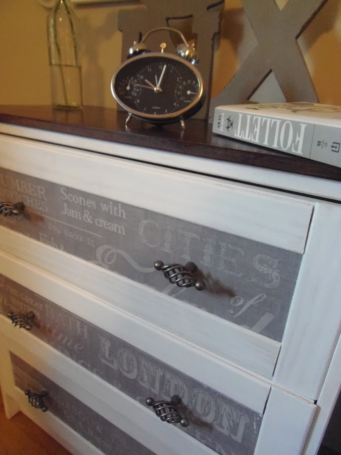 Un papel de pared y unos listones anchos para enmarcar los cajones