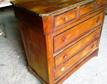 Aqui tenemos un baul muy antiguo que con el paso de los años y las malas constumbres estaba para la basura, despues de ponernos en contacto con su dueño y llevarlo al taller lo hemos devuelto al sitio ...