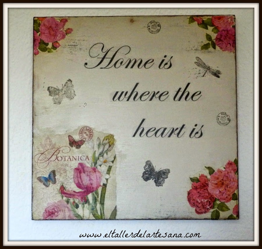 Lo primero que os quiero enseñar es un cuadrito con mensaje que ahora están tan de moda. Este lo he hecho para la entrada de mi casa pero ya sabéis que hago todo lo que veis por aquí bajo encargo. Os lo enseño y explico como está hecho.
