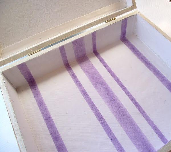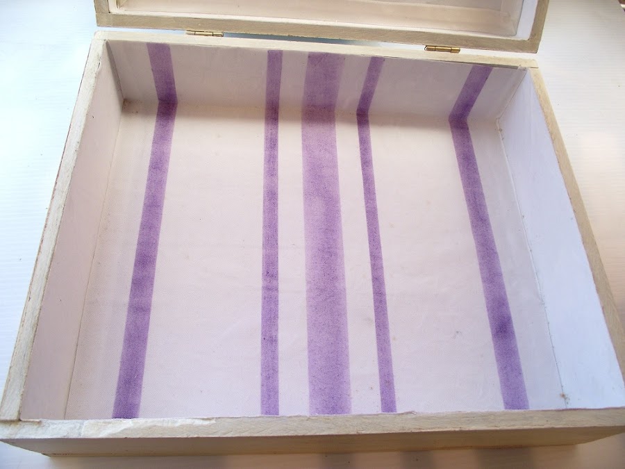 El interior lo forré con lienzo color crudo al que hice unas líneas a pincel seco en el color de las glicinias.