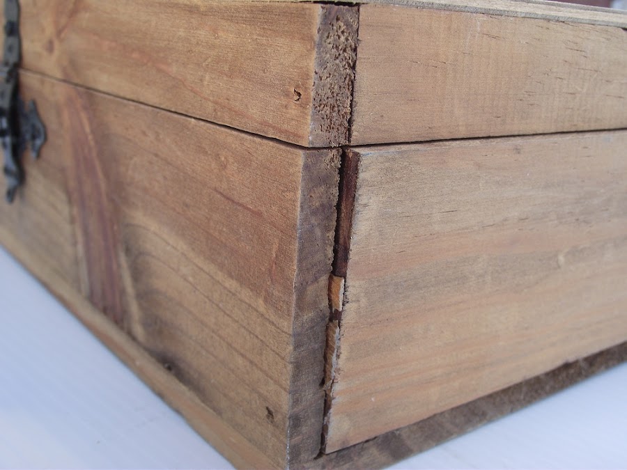 En este caso la caja estaba muy deteriorada (¡¡bien!!) y después de quitarle todos los herrajes tuve que encolarla bien y sujetar los laterales con puntas ocultas.