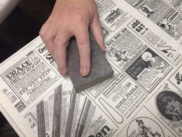 Como queríamos dar un aspecto desgastado y muy vintage, usamos el taco de lija para homogeneizar con la madera.
