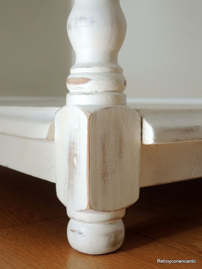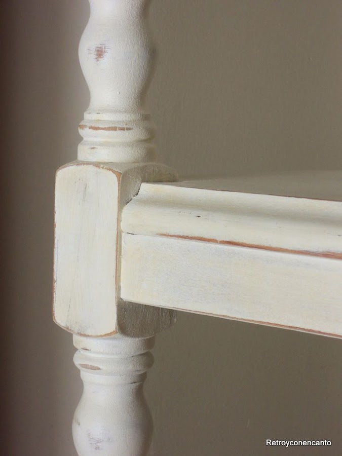 ..., y los detalles del suave decapado que conseguimos en esquinas y zonas de roce natural.