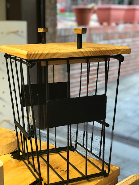 Le di una mano de aceite de linaza a la tapa y coloqué los pomos. Encajé la tapa en la cesta para comprobar que los listones que coloqué entraban perfectamente.