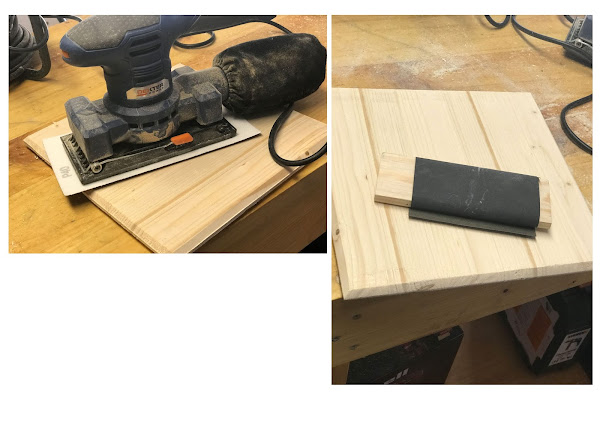 Mientras la pintura secaba, lijé la madera con grano 40 y 80. Después con una lija de grano fino lijé los cantos para sacar las pequeñas imperfecciones.