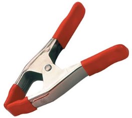 Muy usada en trabajos de corte en maquinaria estacionaria o en armado de piezas medianas o grandes. Esta es una prenza metálica que se fija a una superficie y es activada por un mecanismo ofreciendo sujeción vertical u horizontal según se necesite. En la punta de sujeción tiene una goma para evitar que se marquen las piezas