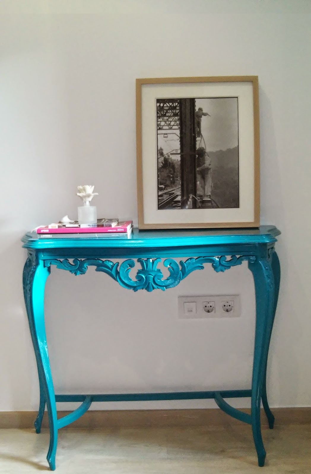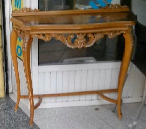 Desde que empecé a recuperar viejas piezas y sobretodo a medida que ven los resultados toda mi familia se dedica a mandarme fotografias de muebles abandonados junto a un contenedor, tirados en el monte (si, desgraciadamente de eso hay mucho por Galicia...y lo que no son muebles...) o expuestos a precio de saldo en tiendas de segunda mano, éste último fue el caso de la consola que hoy os enseño, cuando la vi me tiré al coche cual psicópata a su víctima.