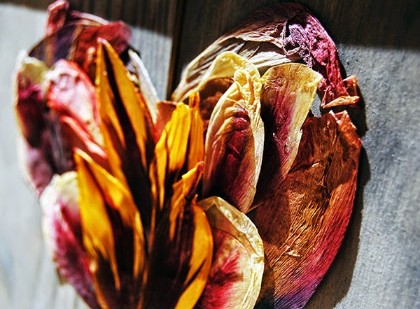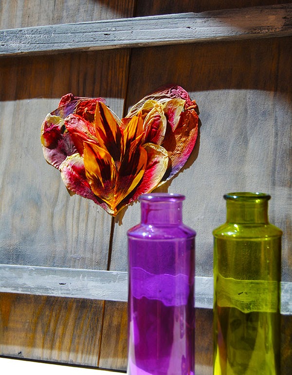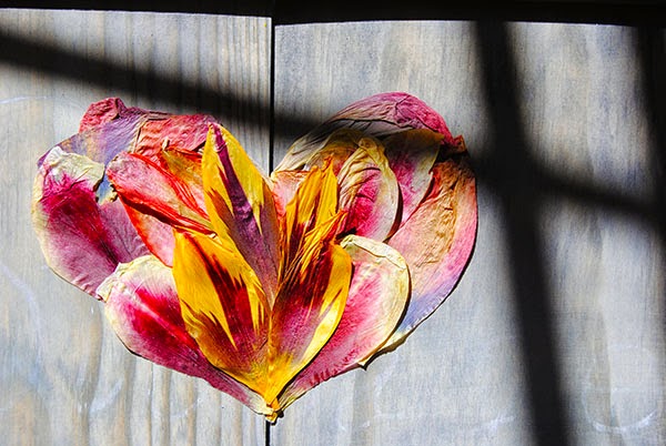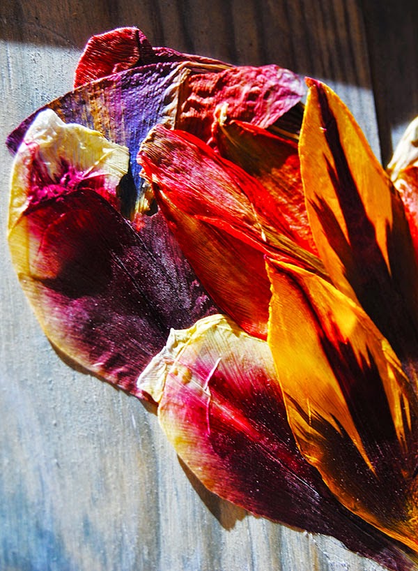 Lo primero fue, evidentemente, secar los pétalos de los tulipanes. Durante tres semana en un libro con mucho peso encima. Y así es cómo salieron.