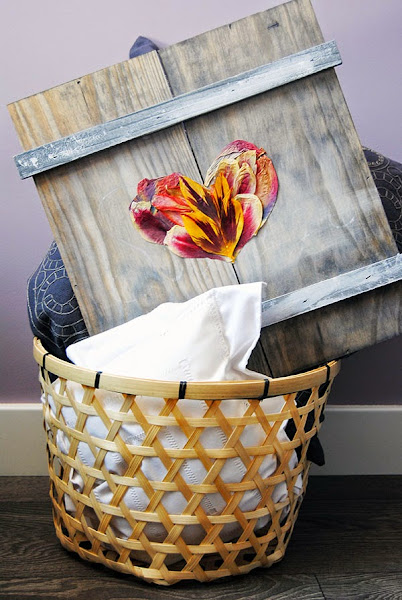 Había un montón de posibilidades y al final me decidí por una tabla que tenía teñida de color humo. Me gustaba el contraste de los colores de los pétalos con lo oscuro del fondo.