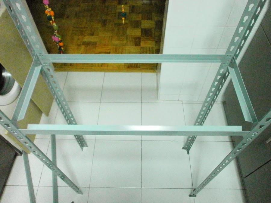 Eliminamos la balda inferior, y colocamos la primera a la altura de una mesa: