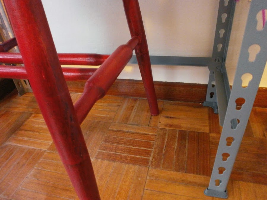 Y con 3 de las 4 barras sobrantes, un reposapiés, que sirve también para dar estabilidad a la estructura: